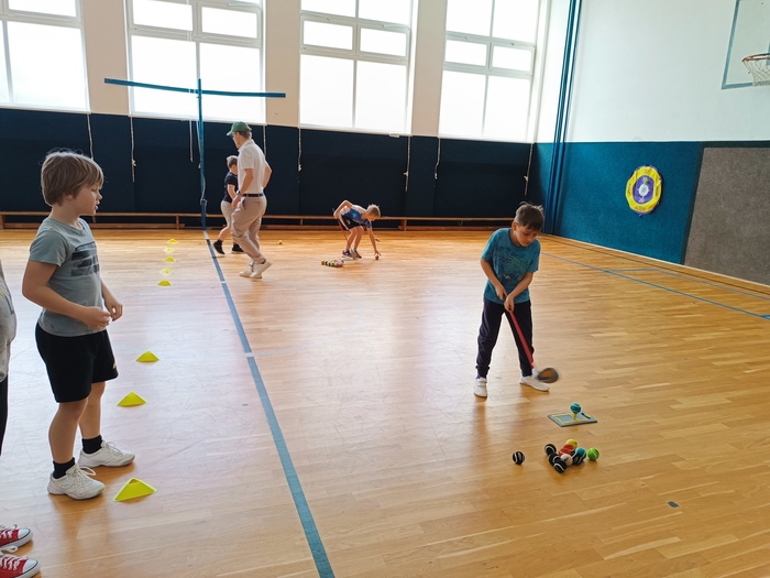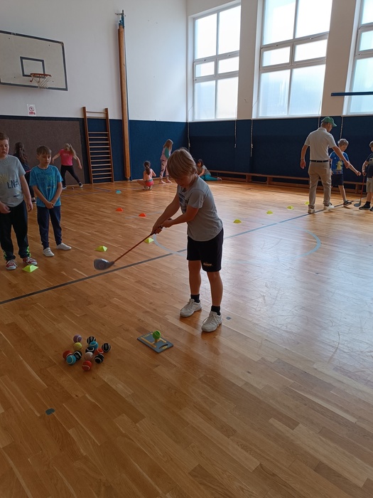V pátek 17. 4. navštívil naši školu trenér golfu ze Svratky. Děti ze 3. a 5. třídy si vyzkoušely základy této hry, moc si to užily a ti nejlepší vyhráli pravý golfový míček.