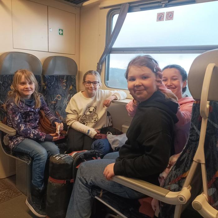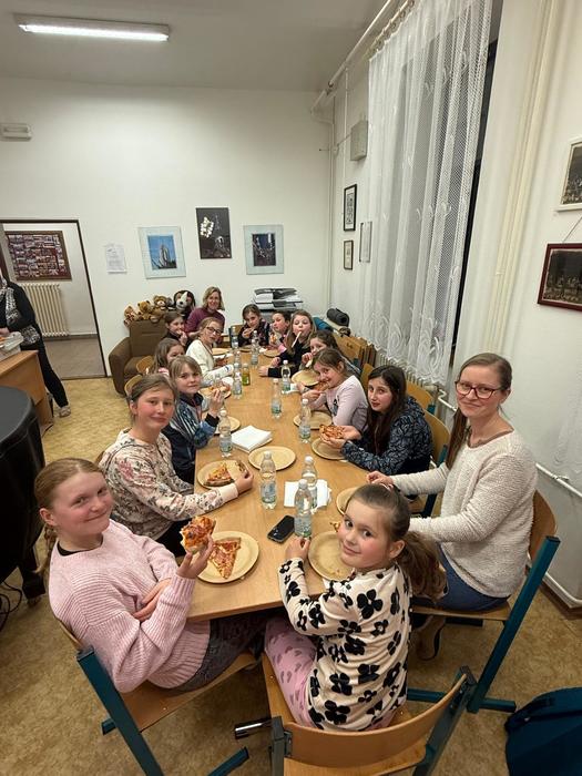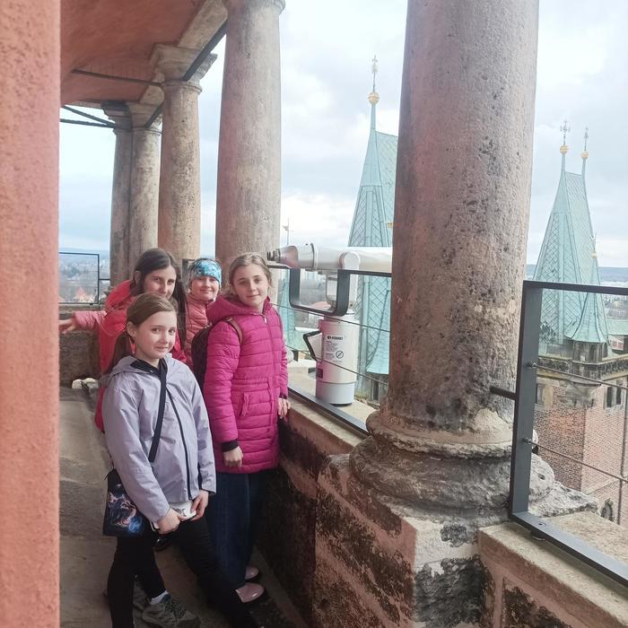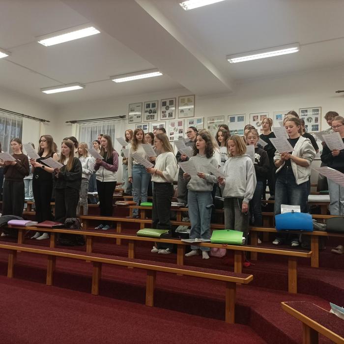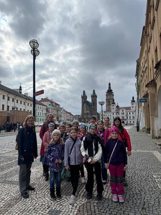 Ve čtvrtek 12.3. jsme se vydali s částí pěveckého kroužku Kvíčaly, paní učitelkou Žákovou a paní Behancovou do Hradce Králové. Vyjížděli jsme z Hlinska v 10:59 vlakem. Přestupovali jsme v Rosicích nad Labem a pokračovali dále v cestě. Na nádraží v Hradci, na nás již čekala paní sbormistryně Lucie Gregorovič Fárová a společně jsme jeli městskou hromadnou dopravou do pěvecké školy Jitro. Tam jsme se nasvačili v šatně a vybalili si pár potřebných věcí. Po svačině nás paní sbormistryně provedla po škole a ukázala nám, kde budeme spát. Po prohlídce školy jsme se šli projít po náměstí. Okoukli jsme zpívající schody, zašli do kavárny na zmrzlinu a v 15:00 jsme měli zamluvenou prohlídku Bílé věže na Velkém náměstí - výhled na Hradec byl nádherný, vystoupali jsme 226 schodů a dozvěděli se mnoho zajímavostí o historii i současnosti města. Po prohlídce jsme se vrátili do školy, podívat se na zkoušku Vlčích máků, Jitříčka a nakonec i hlavního velkého sboru Jitro. Ti letos v létě navštíví Čínu. Zazpívali nám část repertoáru a byli skvělí! Pak už nás čekala výborná večeře - pizza. Po jídle jsme se šli převléci do pyžama, vyčistili si zuby a nachystali místo na spaní. Paní učitelka nám na večer nachystala kolektivní hry. Po dlouhém, zážitky nabytém dni, se nám většině chtělo spát, a tak jsme šli. Druhý den ráno jsme se nasnídali, potrénovali písničky, které jsme měli zpívat o víkendu na Kuklíku a ve Sněžném. Pak jsme se sbalili a vyrazili k autobusové zastávce a odjeli na vlakové nádraží. Cesta utekla a ani jsme se nenadáli a čekali na nás rodiče v Hlinsku. Pobyt v Hradci se nám všem moc líbil a jsme rádi, že jsme mohli nakouknout „pod pokličku“ profesionálním pěveckým sborům ze ZUŠ Jitro.