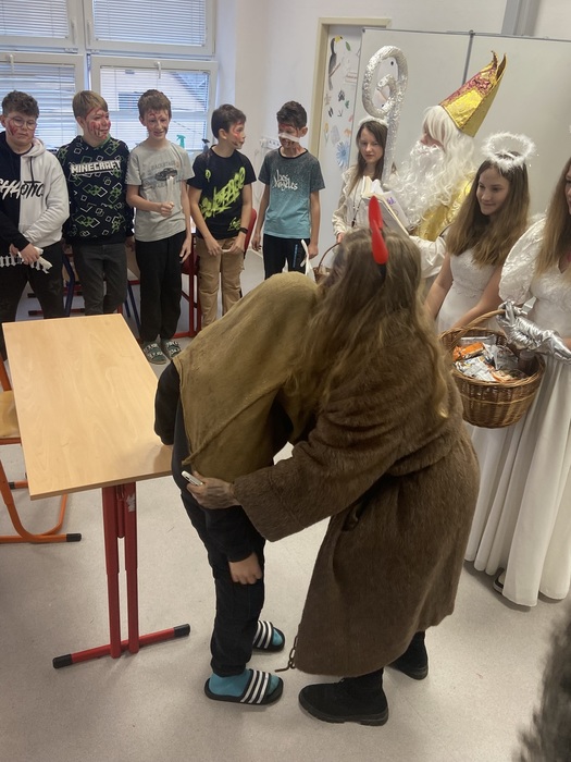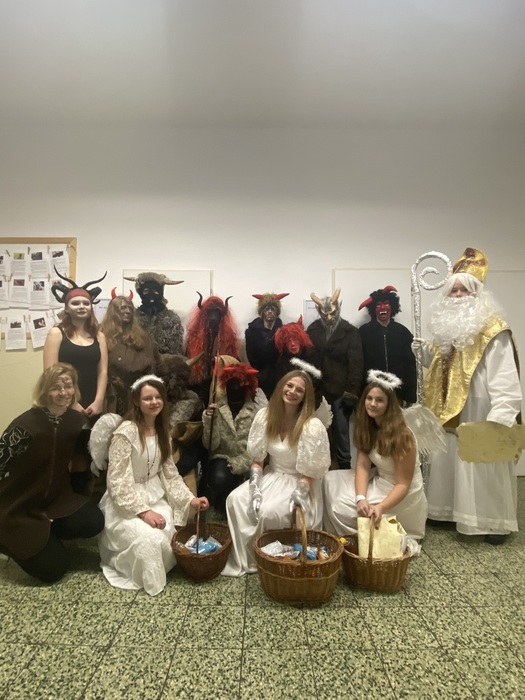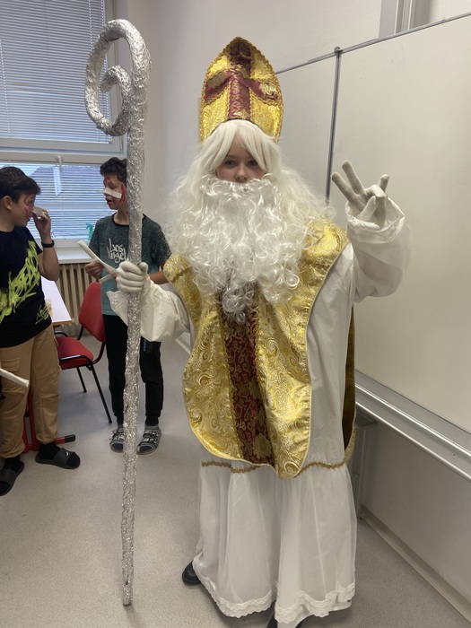 Mikulášská nadílka proběhla na naší škole tradičně 5. prosince 2025. O kouzelnou atmosféru se postarali žáci 9. ročníku, kteří se s velkým nasazením ujali rolí Mikuláše, andělů a čertů.