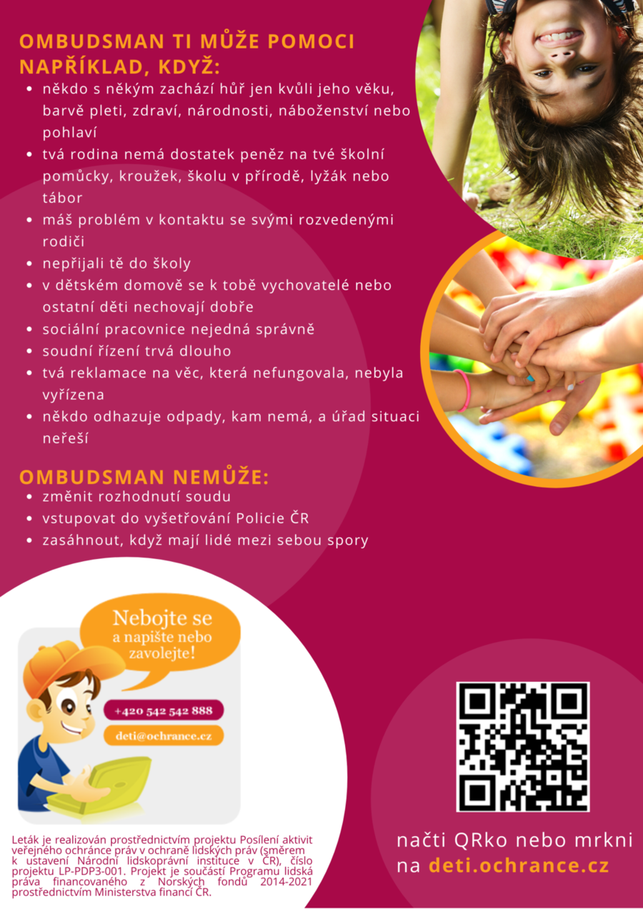 Nebojte se a napište nebo zavolejte! +420 542 542 888, deti@ochrance.cz.